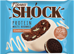 Состав: Глазурь без добавления сахара (мальтит, какао-масло, молоко сухое обезжиренное, лецитин соевый (эмульгатор), ванилин), кокосовое масло, белый шоколад (мальтит, какао-масло, молоко сухое цельное, сыворотка молочная сухая, инулин (пищевые волокна), соевый лецитин (эмульгатор), экстракт ванили), отруби овсяные, вода питьевая, полидекстрозы (влагоудерживающий агент), эритрит (подсластитель), смесь белков (концентрат молочного белка, концентрат сывороточного белка, яичный белок), мука миндальная, какао-порошок, молоко сухое цельное. Содержит менее 2%: глицерин (агент влагоудерживающий), лецитин соевый (эмульгатор), соль морская пищевая, сода пищевая (регулятор кислотности), сорбат калия (консервант), лимонная кислота (регулятор кислотности), ароматизатор пищевой «Печенье», краситель натуральный.